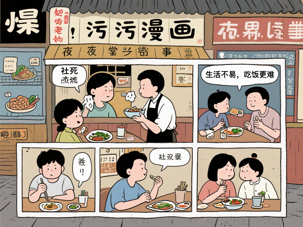 以某知名博主的“污污漫画”系列为例,其创作的《深夜食堂尴尬事》系列曾在微博上获得百万转发。这组漫画以一家小餐馆为背景,讲述了主角在点餐时遇到的各种“社死”瞬间,比如点错菜被服务员误解,或者不小心听到隔壁桌的情侣吵架。漫画中一句“生活不易,吃饭更难”的台词,瞬间引发了网友的共鸣。这样的内容不仅贴近生活,还通过幽默的笔触和细腻的情感,让读者在笑声中找到情感出口。